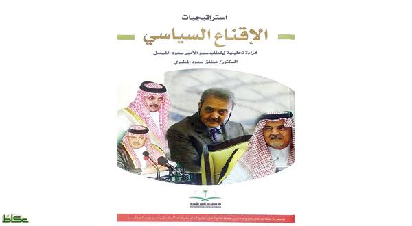 صدر للدكتور مطلق بن سعود المطيري كتاب بعنوان «استراتيجيات الإقناع السياسي: قراءة تحليلية لخطاب سمو الأمير سعود الفيصل»، متناولا الخطابات السياسية لصاحب السمو الملكي الأمير سعود الفيصل، مستنبطا ملامح أسلوبه الفذ والمختلف في الإقناع في خطابه السياسي، والوقوف على أبرز محطات التحليل السياسي، والعمق الاستراتيجي في مفرداته التي تتمتع بأسلوب أدبي سياسي من رجل وهب نفسه وفكره للسياسة منذ زمن بعيد، حتى عرف على مستوى العالم كأحد السياسيين المؤثرين في تاريخ الدول. وفي دراسة المطيري التحليلية، كتب في مقدمتها «منذ بضع سنوات وأنا أفكر بموضوعية الباحث وحيادية المؤرخ عن شخصية عربية تجسد التاريخ في أقوالها وأفعالها وخبراتها، وتستحق الدراسة والتحليل بما يفيد واقعنا ويساعدنا ــ نحن العرب ــ على امتلاك مستقبلنا، وبعد سنوات من البحث والتنقيب توصلت إلى قناعة حقيقية تتمثل في أن حاضرنا العربي بشكل عام، والسعودي على وجه الخصوص، مليء بمثل هذه الشخصيات التي امتلكت خبرات قد لا نجد مثيلا لها بين الشعوب الأخرى، فالتاريخ لدى الشعوب يقاس بالأيام والسنين، أما في منطقتنا العربية فيقاس بالأحداث والأزمات، ومن أبرز تلك الشخصيات التي جعلت من التاريخ إنسانا يسير على الأرض سمو الأمير سعود الفيصل وزير الخارجية»، مضيفا: «لأن قراءة سريعة للخطاب السياسي للفيصل تكشف بصورة جلية حرصه على تنوع أساليب الإقناع المستخدمة بين النموذجين النفسي والثقافي والاجتماعي، يدعمه في ذلك إتقانه لمهارات الإقناع اللغوي، ودقته في استخدام تلك المهارات التي تندرج ضمن النموذج النفسي؛ من أجل إقناع الجمهور المستهدف، وهي المهارات التي اكتسبها بفضل تربيته في ربوع المملكة التي حفظت فيها اللغة العربية وقواعدها، وبين جدران القصر الملكي، وعلى يدي والده الملك فيصل بن عبدالعزيز ــ طيب الله ثراه ــ الذي يعد مدرسة عربية في فنون الخطابة والبلاغة».