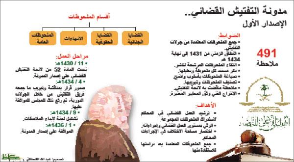 وكان المجلس الأعلى للقضاء قد أصدر المدونة والتي استغرقت وقتاً طويلاً في إعدادها من قبل خبراء، وذلك بجمع الملحوظات المعتمدة من تقارير المفتشين القضائيين في جولات التفتيش الدورية خلال الأعوام من 1431 إلى 1434هـ سعياً لترشيد العمل القضائي في المحاكم والرقي بمستواه واختصار مساحة الاختلاف في إجراءات المحاكم، وضمت المدونة، 491 ملاحظة مع إيضاح الموقف الصائب المنبغي اتخاذه تجاهها وتعليل ذلك.