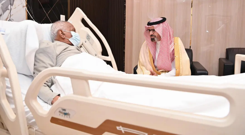 During the visit, Prince Nasir bin Muhammad checked on his health condition, praying to God for his swift recovery.
