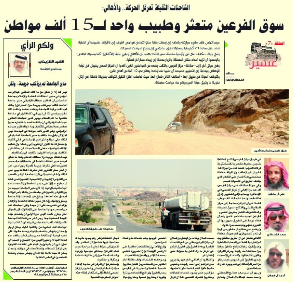 وفي ما يلي النص التعقيب: «نوضح لكم أن مركز الفرعين نال اهتمام الخدمات البلدية وإقامة المشاريع التنموية، حيث أنشئ مسلخ نموذجي للمحافظة في مركز الفرعين، وجرى إنشاء ساحة احتفالات تخدم أهالي الفرعين في المناسبات والاحتفالات الوطنية، ونفذت مشاريع سفلتة وإنارة في مركز الفرعين وقراه بمبلغ يزيد على 22.181.658 ريالا».