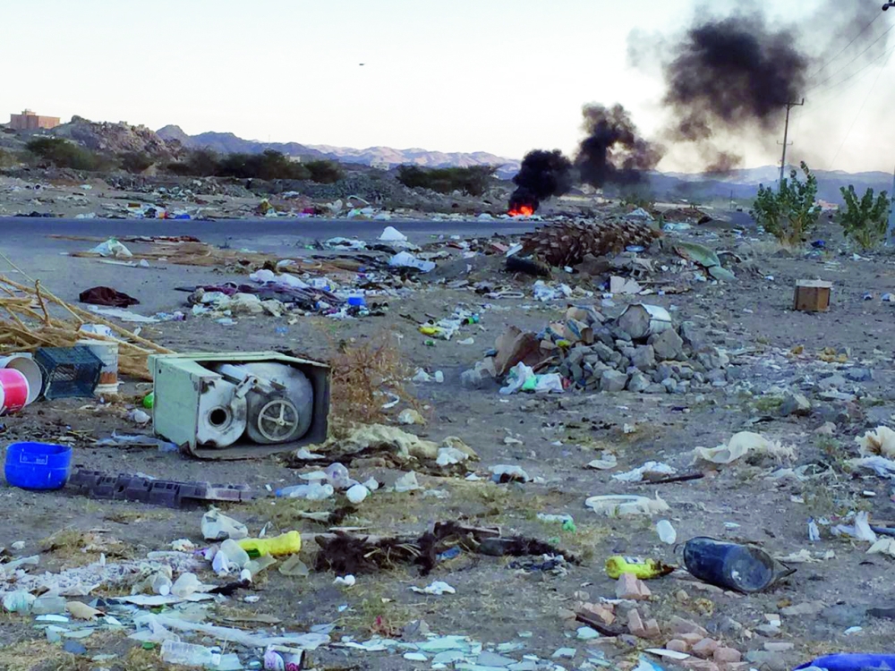 حرق النفايات في المردم العشوائي أحدث تلوثا في قرية الجفرة. (عكاظ)
