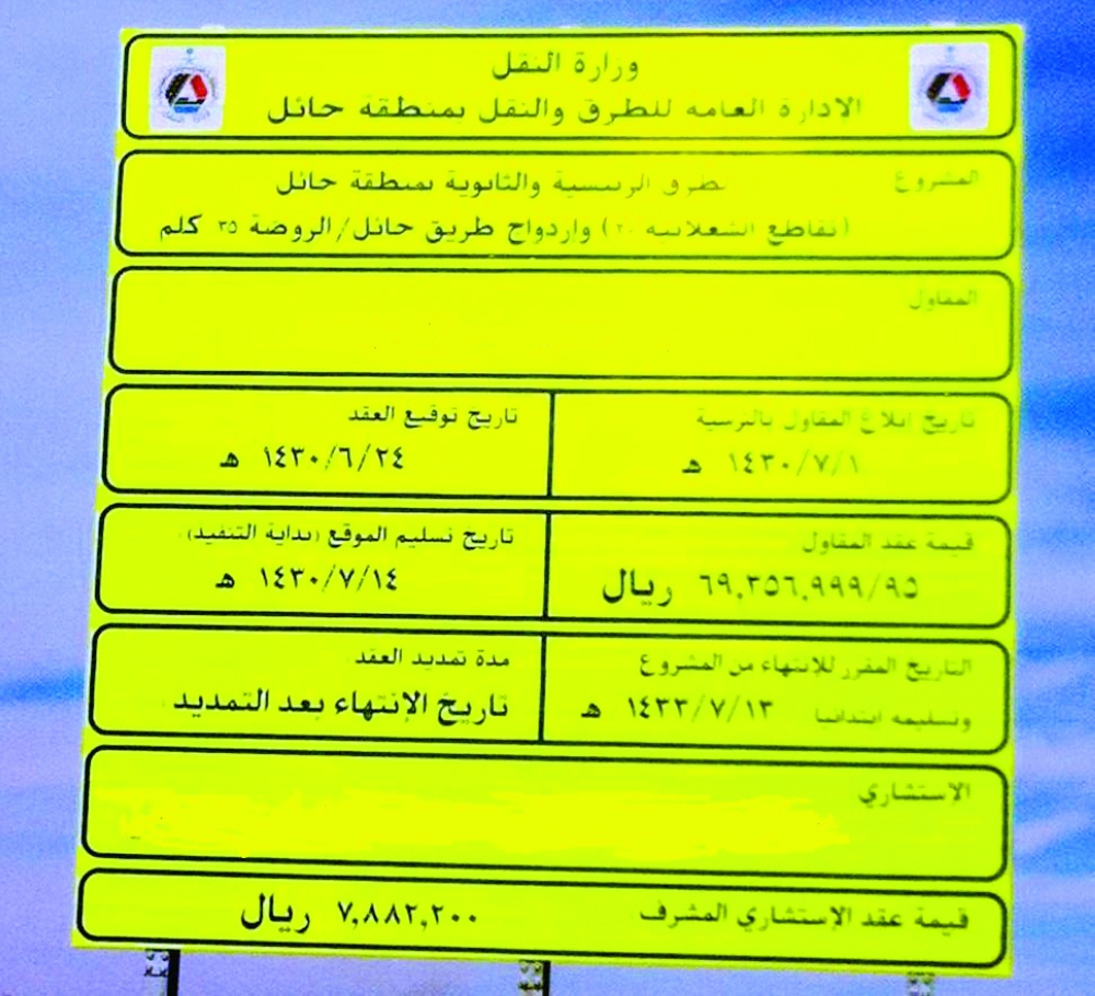وانتقد عبدالله الشمري تعثر مشروع طريق حائل ـ الروضة البالغة طوله 70 كيلومترا منذ ثمانية أعوام، مشيرا إلى أن جرى ترسيته في شهر رجب 1430 ولمدة ثلاث سنوات، وعلى مراحل عدة، دون أن ينجز حتى اللحظة.