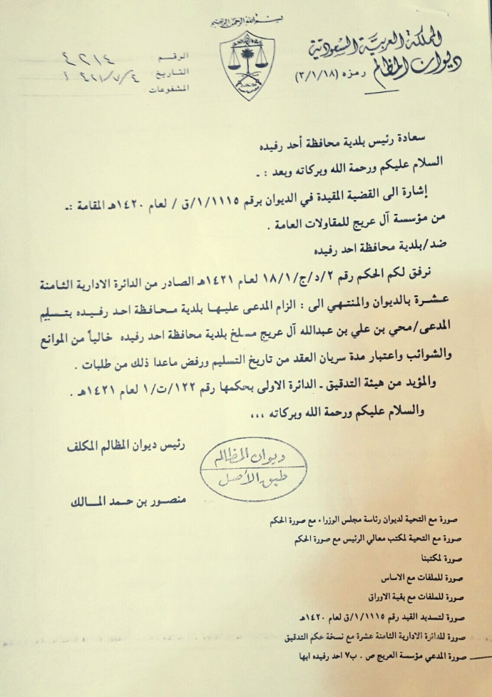 واستغرب المستثمر تعمد البلدية «شخصنة» القضية -حسب قوله- دون التزامها بالأحكام القضائية الواجبة التنفيذ وآخرها أمر تنفيذ صادر في 9/8/1437 هـ.