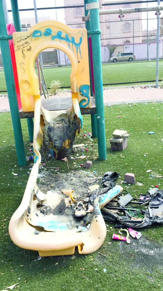 وذكر سعد الحربي أن مقاعد الحدائق ومظلاتها تحطمت وأصبح الزوار لا يجدون المكان المناسب للجلوس، فضلا عن أن ألعاب الأطفال تهالكت وأصبحت مصدر خطر على الصغار، وجزء منها تعرض للحرق، مطالبا بصيانتها، وتوفير حراس يحمونها من العابثين.