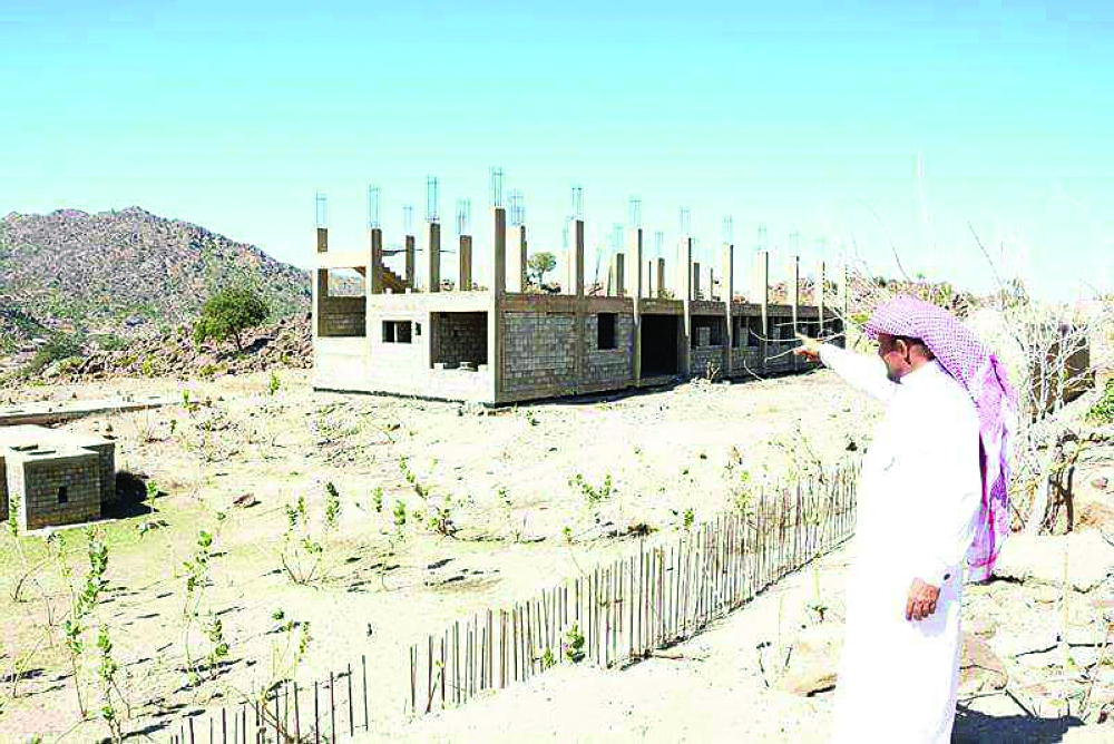مشروع مبنى المدرسة متعثر منذ 10 سنوات. (عكاظ)