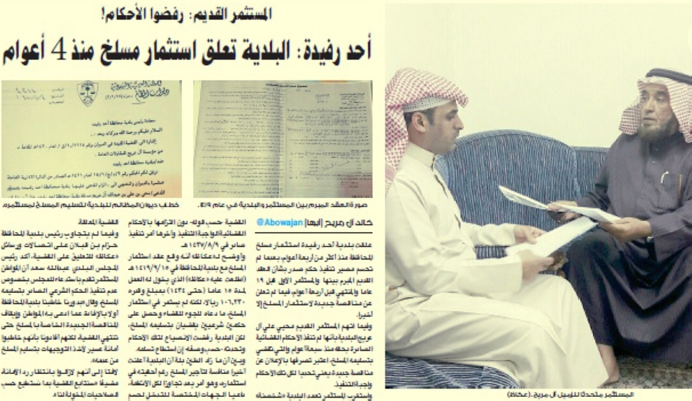 فندت بلدية أحد رفيدة اتهامات مستثمر، ادعى رفضها تنفيذ أحكام قضائية صادرة بحقه منذ سبع سنوات، تقضي بتسليمه مسلخا في المحافظة، موضحة أنه جرى إزالة مسلخ البلدية القديم المؤجر للمستثمر، لدواعي المصلحة العامة، بعد نزع ملكية موقعه لصالح وزارة النقل.