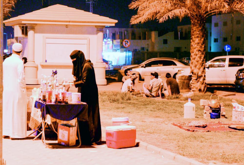 فتاة تبيع مشروبات الطاقة في ممشى الهجرة بالمدينة. (تصوير: أحمد القحطاني)