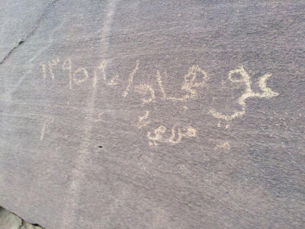 لم يكن العيد هذا العام كغيره من الأعياد بالنسبة لي، بعد أن فاجأني صديق لي بصورة لنقش نقشته باسمي في أحد أيام عام ١٣٩٥هـ في صَفَا أصمّ يقبع في رأس جبل في أعالي السراة اسمه (أمهات رياح)، حين كنت طفلاً صغيراً أرعى غنمي في جنباته، قبل أن تأخذني الأيام في رحلة طويلة جبت فـيها مشارق الأرض ومغـاربها في رحلات عمل، لأعود اليوم إلى نقشي أتلمس الفرق بين ذلك التاريخ وبين اليوم، فجادت قريحتي بهذه القصيدة: