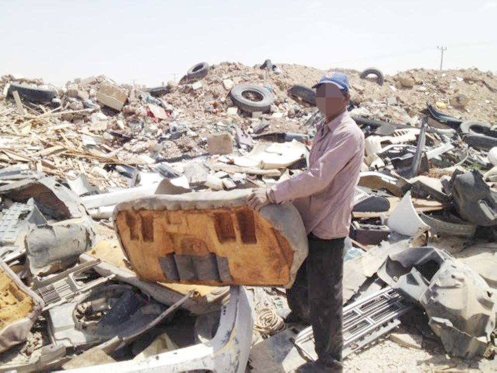 يخرج العامل الآسيوي محمد نذير يوميا ممتطيا دراجته الهوائية، إلى مردم النفايات شمال المنطقة الصناعية في حائل، للتنقيب عن الإسفنج، من مقاعد السيارات التالفة، والأثاث المنزلي، لبيعه على مصانع لتدويره، غير عابئ بالأضرار والتلوث الذي يحدثه في البيئة، فضلا عن عمله المخالف.