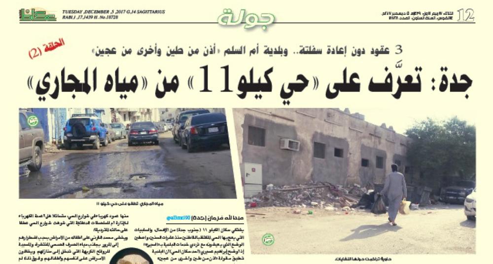 وكانت «عكاظ» نفذت جولة على حي كيلو 11 ونقلت خلالها شكاوى السكان من تدفق مياه المجاري، متذمرين من تشكيلها مستنقعات راكدة تصدر لهم الأوبئة والحشرات والروائح الكريهة.