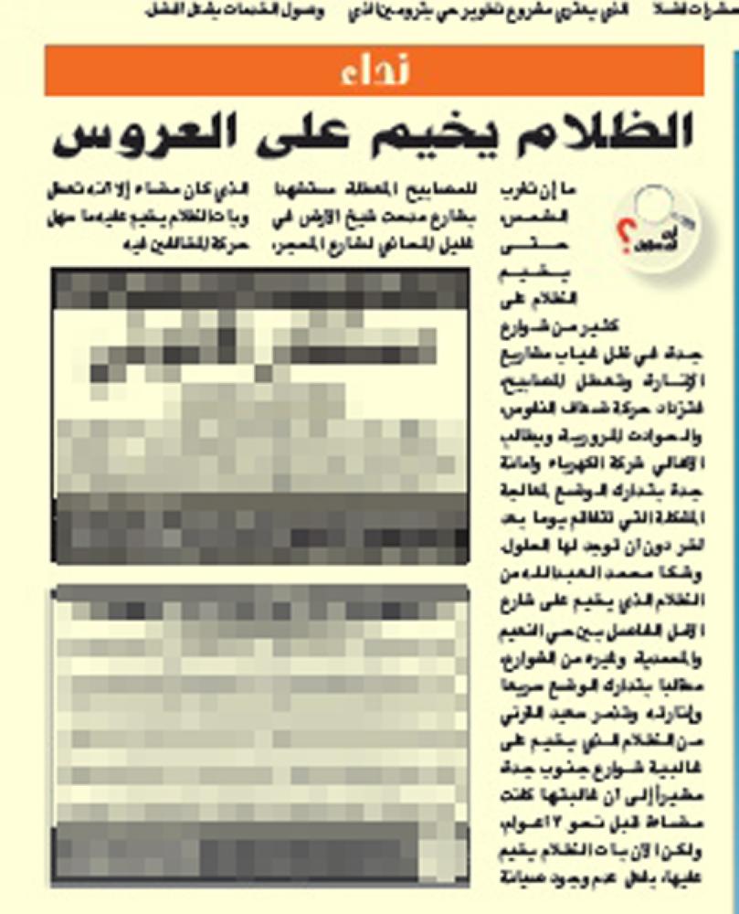 أرجعت أمانة جدة حالة الظلام التي يعيشها شارع الأمل الفاصل بين حيي النعيم والمحمدية في شمال المحافظة، إلى تعطل مولد الكهرباء المغذي للمنطقة، إثر هطول الأمطار عليه أخيرا، مشيرة إلى أن الخلل لم يستمر طويلا بعد أن نفذت فيه أعمال الصيانة. وأفادت الأمانة تعقيبا على ما نشرته «عكاظ» بعنوان «الظلام يخيم على العروس» (13/4/1439) بأن صيانة الإنارة في نطاق جنوب جدة تنفذ وفق جداول دورية على مختلف الأحياء، مشيرة إلى أن أعمال الصيانة تنفذ حسب عقود المشاريع المتوافرة وحسب الإمكانات المتاحة الحالية والآلية المتبعة.