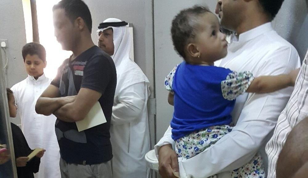 مراجعون مع أطفالهم في أحد المراكز الصحية في جازان. (تصوير: محمد القيسي)