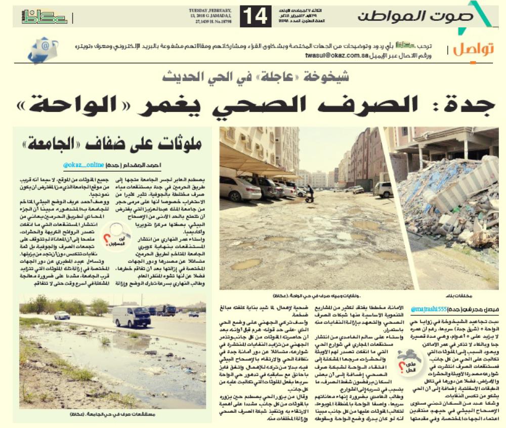ضوئية لما نشرته «عكاظ» في (27/5/1439).