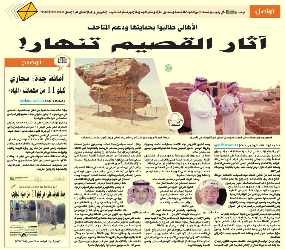 تعقيبا على تقرير«عكاظ» حول انهيار آثار القصيم