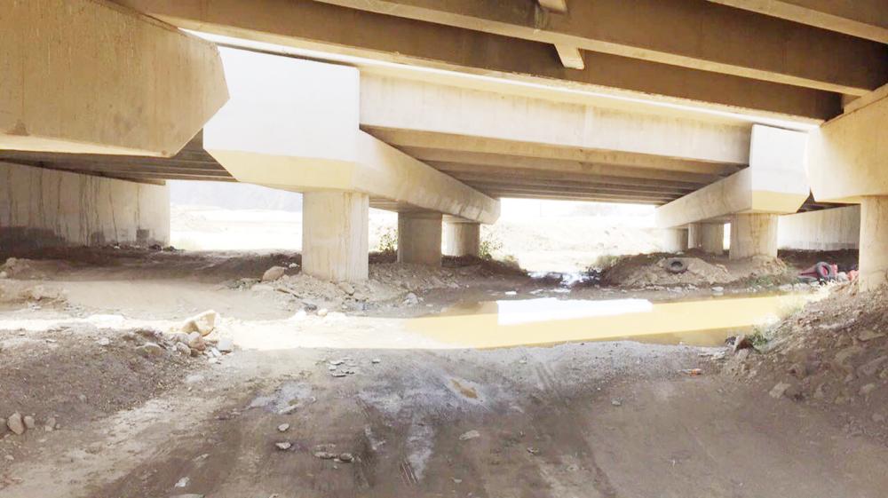 عبارة تحت جسر يستخدمها الأهالي للعبور رغم الأخطار. (عكاظ)