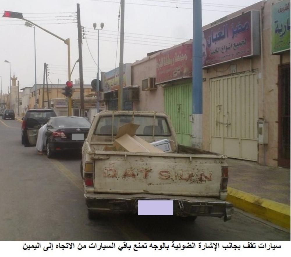 وعن وقوف السيارات بجانب إشارات المرور بمنطقة الانعطاف إلى اليمين لاتساع الخط الأصفر بما يسمح لوقوف السيارات، أفاد الكعبي بأن وقوف السيارة بجانب الإشارة تسجل على السائق مخالفة وقوف غير نظامي، وفي حالة التعمد تسجل مخالفة إعاقة حركة المرور.