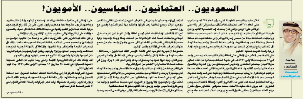 تلقى الكاتب في «عكاظ» الزميل محمد الساعد خطاب شكر وتقدير من مؤسسة عبدالوهاب بن محمد حلواني نظير ما يقدمه من مقالات متميزة، وتسليطه الضوء على أحداث وطنية وتاريخية منذ تأسيس الملك عبدالعزيز -طيب الله ثراه- لهذه الدولة، خصوصا في مقالة بعنوان «السعوديون العثمانيون العباسيون الأمويون» في (16/12/1439).