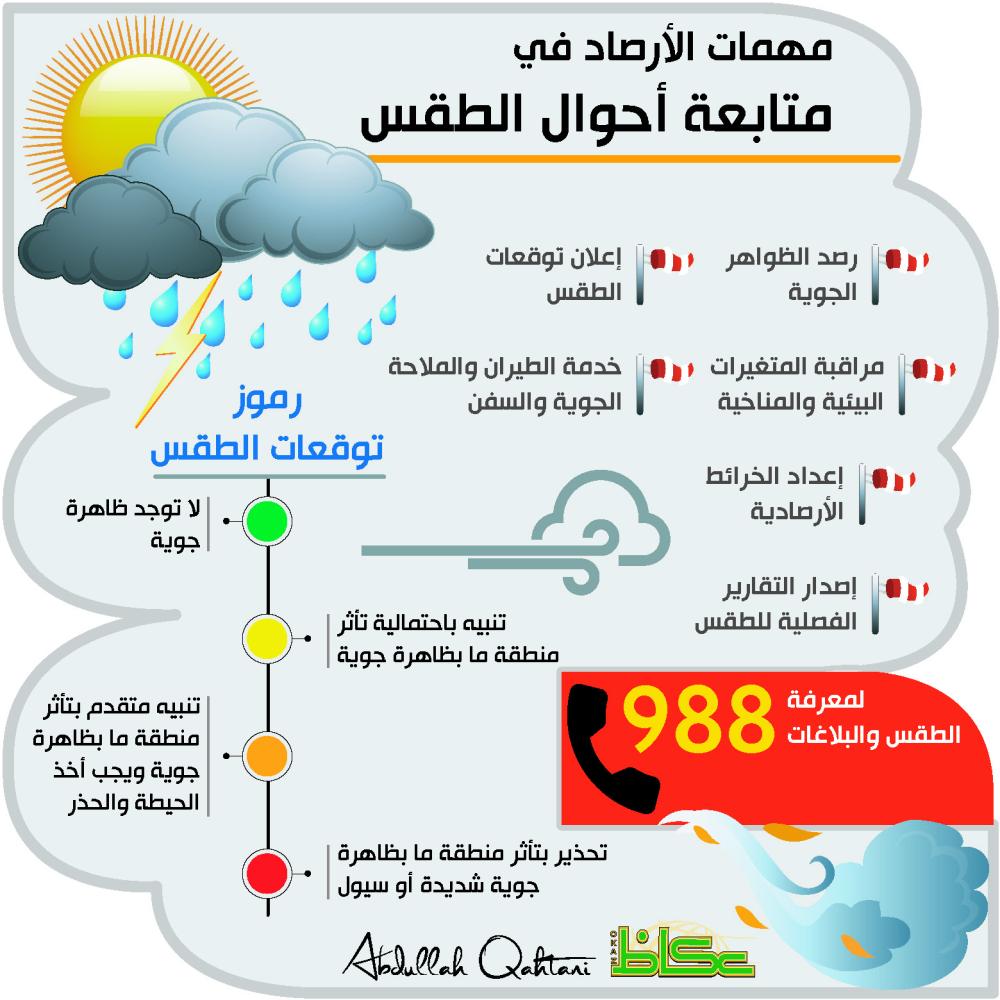 وأخيرا.. هناك دور آخر يقع على عاتق أفراد المجتمع، بعدم إعادة نشر الأخبار التي لا تنتسب إلى جهة رسمية أو متحدث رسمي لأنهم بإعادة توزيعها عبر الأجهزة الذكية التي يحملونها في أياديهم يسهمون في إثارة الذعر وإرباك المجتمع، وخصوصا إذا كان الأمر يتعلق بتوقعات أمطار قوية أو عاصفة أو إثارة أتربة وغير ذلك، كما لا يفوتني أن استفسر عن نظام الأرصاد المتضمن العقوبات المتعلقة بالمجتهدين الذين لا علاقة لهم بإصدار تقارير الطقس.