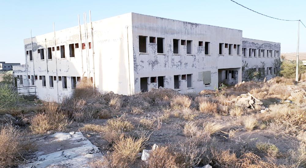 المبنى المتعثر لابتدائية عبدالله بن المبارك. (عكاظ)