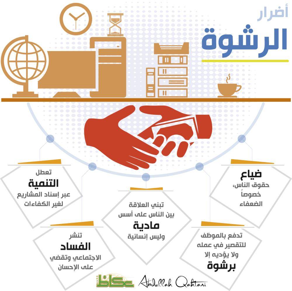 تؤرق مشكلة الرشوة الدول النامية والمتقدمة على حدٍ سواء، لكن أصبحت هذه القضية تشغل المجتمعات العربية لتفشيها في المعاملات اليومية، واتساع دائرتها بدرجة لم يسبق لها مثيل من قبل، مما يهدد مسيرة التنمية ومستقبل تلك الدول.