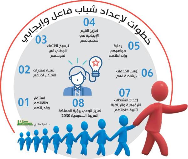 إن فئة الشباب وما تعنيه من أهمية على كافة المستويات والأصعدة لها الدور الكبير والمؤثر الذي قد تلعبه في الحاضر والمستقبل وفي دعم مسيرة المجتمعات وتطوير الأوطان وحمايتها كشريحة لها وزنها، وتحتاج إلى من يوجهها ويستثمر طاقاتها كشريك قوي في التغير والتنمية وفي مجالات الحياة المختلفة وأبرزها، وإعطائهم مساحات رحبة للإبداع والأصالة، ولابد من تعزيز الأخلاق النبيلة بينهم، وغرس حب الوطن في نفوسهم ليكونوا شخصيات مستقلة ودروعاً حصينة لبلادهم في مواجهة أي تيارات خارجية عدائية أو هجمات إعلامية شرسة تستهدف أمننا وقيادتنا ولحمتنا الوطنية.