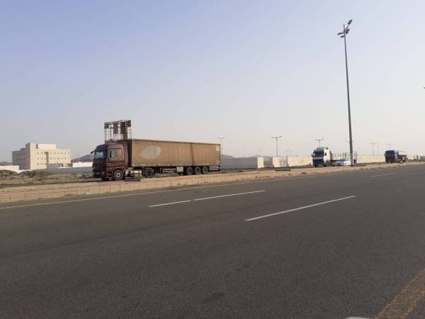 الشاحنات تتحرك بجوار الكليات تشكل خطرا. (عكاظ)