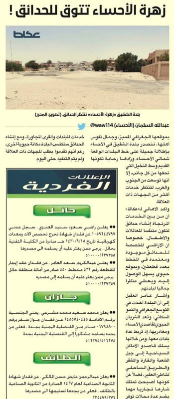 أمانة الأحساء رداً على تقرير «الزهرة»: «الشقيق» مدرجة في الخطط