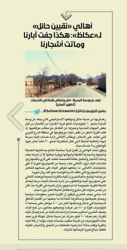 خدمات المياه بحائل: «نقبين» مدرجة في الخطة الخمسية
