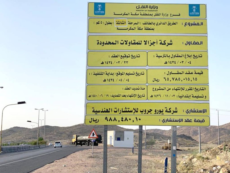 أضحى مشروع الطريق الدائري في محافظة الطائف من أكثر مشاريع الطرق مدةً في التنفيذ على مستوى المملكة، إذ وضع حجر الأساس منذ عام ١٤٢٧هـ ليتم تنفيذه على أربع مراحل، فيما تم الانتهاء من تنفيذ عدد من المراحل وتبقت خمسة كيلومترات متعثرة.