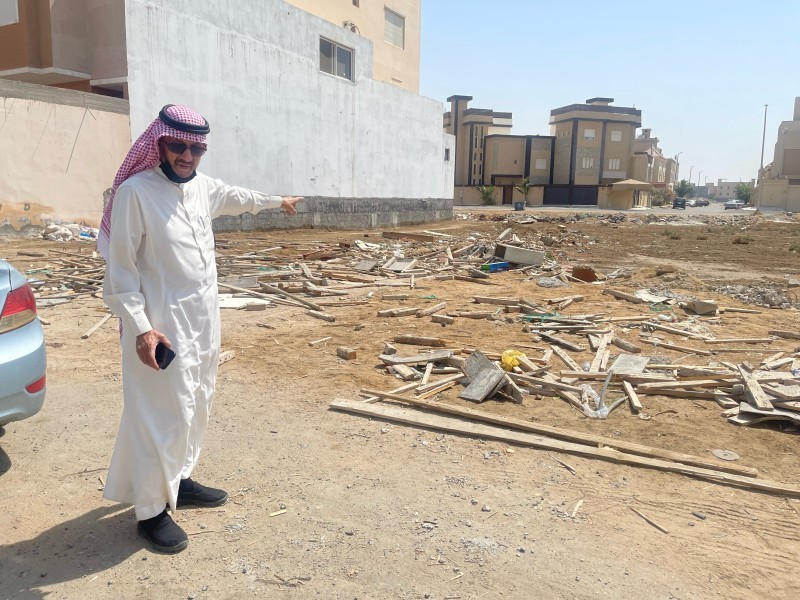 أحد السكان يتحدث لـ«عكاظ» عن نقص الخدمات في الحي. (تصوير: ذكرى السلمي)