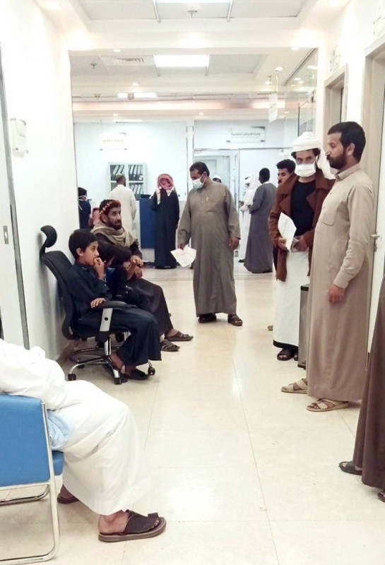 مرضى ينتظرون دورهم داخل المستشفى. (عكاظ)