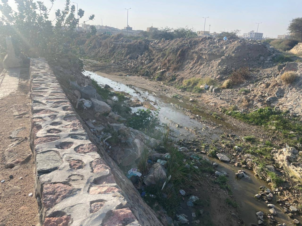 مستنقعات مائية تقلق سكان أحياء وسط الحوية. (عكاظ)