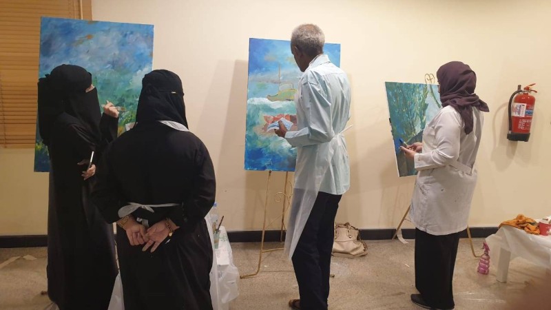 وشارك بالورشة كل من الفنانين: رياض محمد فلاتة، وسعيدة عيسى، ومها عبد الرحمن مشرف، ومنال باعطية، وسلوى رضوان، وجميلة آل محمد، وسلوى كمال، وفاطمة محمد، وأميرة الفكى إدريس، وآمنة قحل، ونوال العلي، وبدرية عبدالهادي المطيري، وفاتن الجاجة، ونجلاء عبدالشكور، ومروة مهيوب، ومنى جبر، وغيداء علي، وزينة رضوان.