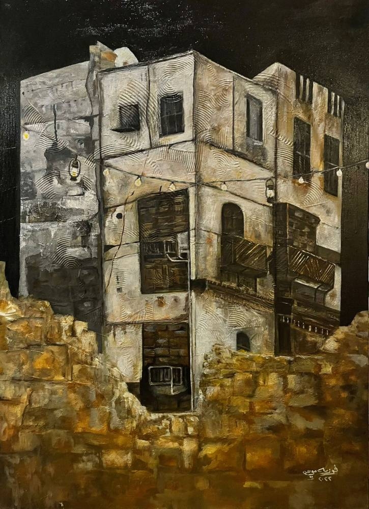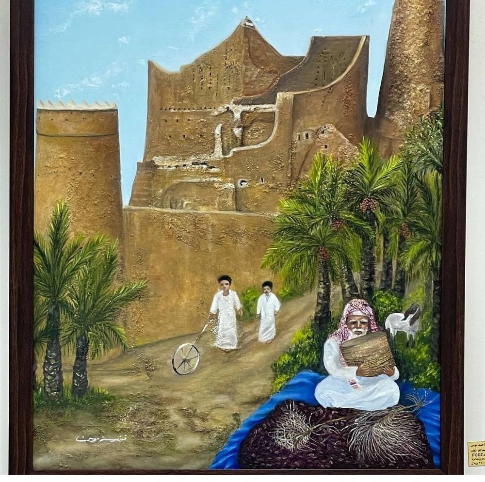 جسدت الفنانة السعودية فوزية الموسى التراث السعودي في أعمالها من أبنية وأزياء ومعالم بارزة كالرواشين بالخشب والمكملات الخشبية في العمارة في جنوب المملكة، وخصوصاً في بلاد غامد وزهران.
