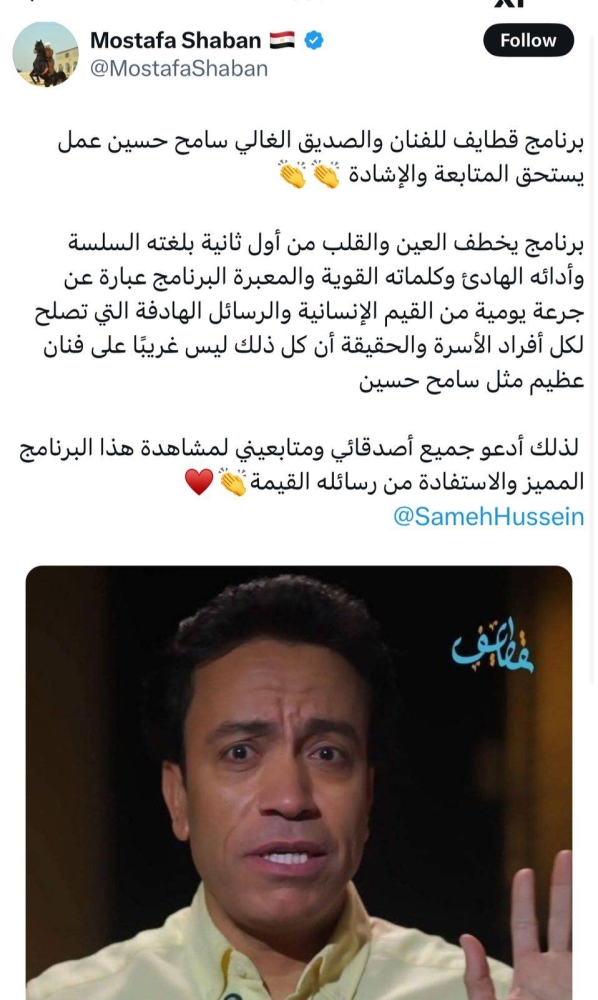 لاقى برنامج «قطايف» منذ بداية عرضه تفاعلا واسعا وإعجابا كبيرا من قبل متابعيه وجمهوره، نظرا لمحتواه الهادف وأسلوبه المميز في تقديم نصائح وحكايات حياتية تحمل رسائل إنسانية وأخلاقية قيمة، ما جعل جميع الفئات تنجذب للبرنامج ويحصد مشاهدات تصل إلى 10 ملايين مشاهدة للفيديو الواحد.
