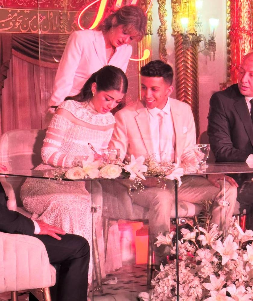 وشهد على مراسم عقد القران الكابتن محمود الخطيب، رئيس النادي الأهلي، في لحظة نالت اهتماماً كبيراً بين الحاضرين، حيث ظهرت ليلى زاهر بإطلالة جذابة مرتدية فستاناً أبيض بأكمام طويلة، بينما ارتدى هشام بدلة باللون البيج.