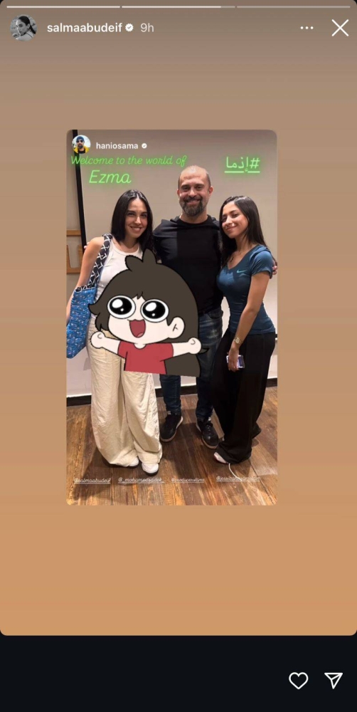 The artist shared a photo that included her with producer Hani Osama and the young Egyptian actress Jessica Hassam El-Din, via the story feature on her personal account on "Instagram," and accompanied the post with the caption: "Film Idma."