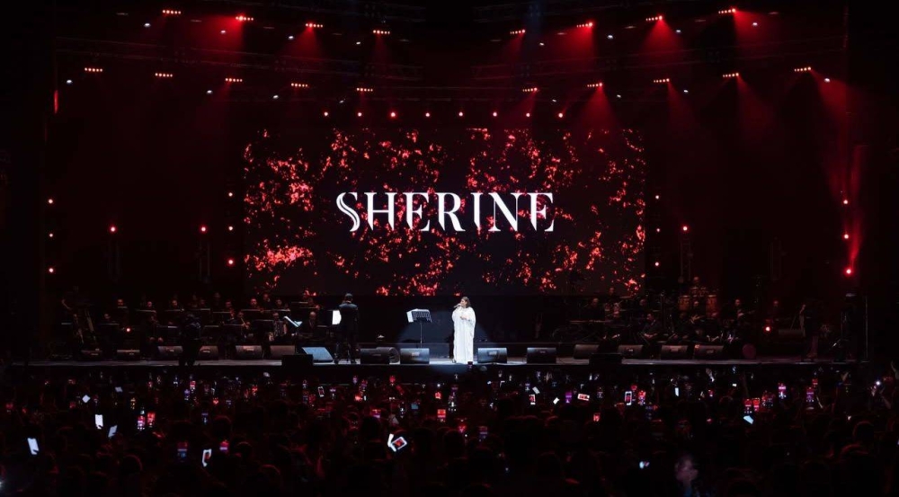 Sherine presented a bouquet of her most famous songs, including "Mashaa'ir, Aah Ya Leil, Keda Ya Qalbi, Wound Tani, Sabri Qaleel," amidst strong interaction from the audience, who did not stop singing and applauding.