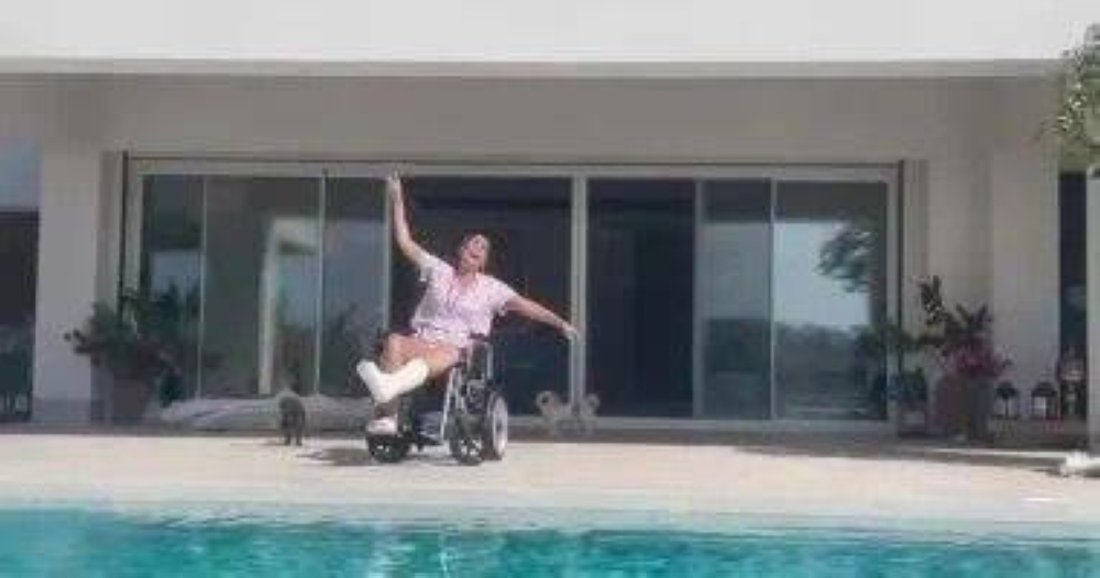 ظهرت غادة عبدالرازق على كرسي متحرك، وساقها مغطاة بالجبس، وذلك خلال قضائها عطلتها الصيفية في منطقة الساحل الشمالي بالقاهرة.