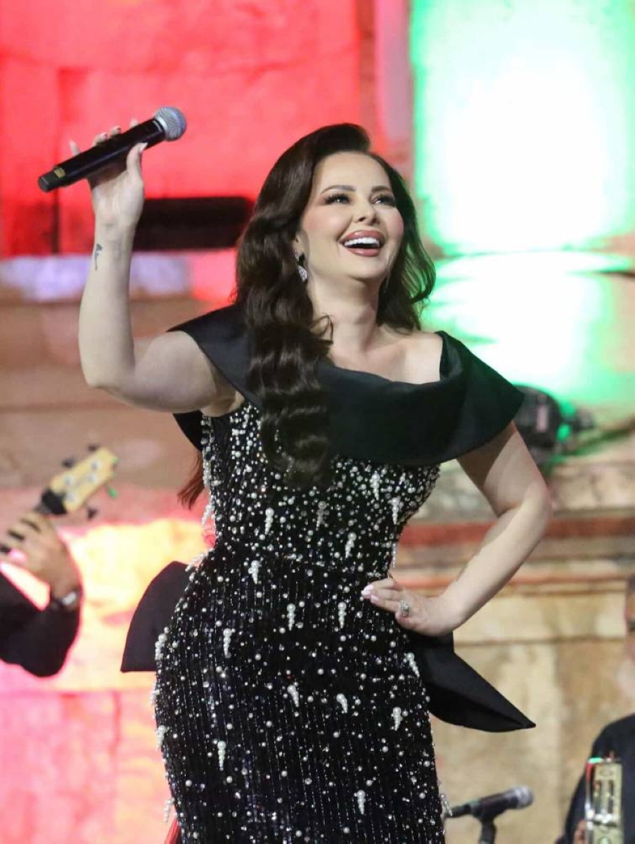 The concert featured a special tribute to the artist from the Jordanian Ministry of Culture, where the Minister of Culture Dr. Azeddin Kanakrieh and the Director of the Jerash Festival Ayman Samawi presented her with an honorary shield in appreciation of her distinguished artistic career and her contributions to Jordanian and Arab music.