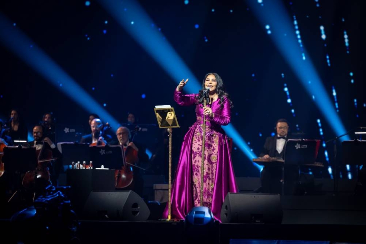 Ahlam moved through nearly three hours of her new songs and the hits that have shaped her long career, enchanting the audience with a selection of her masterpieces such as: "Ras Qimmah," "Abrahil," "Hatha Al-Li Shayif Nafsuh," "Adri Taghayyar," "La Yirooh Al-Layl," "Wesh Dhikrak," "Bghidik," and she sang one of the masterpieces of the Arab artist Mohammed Abdu, "Law Kalafitni Al-Mahabba."