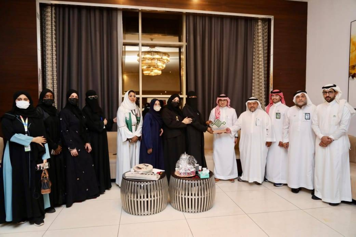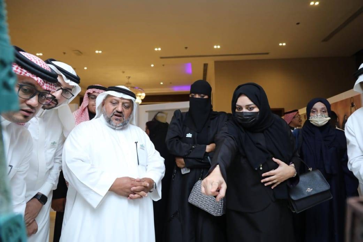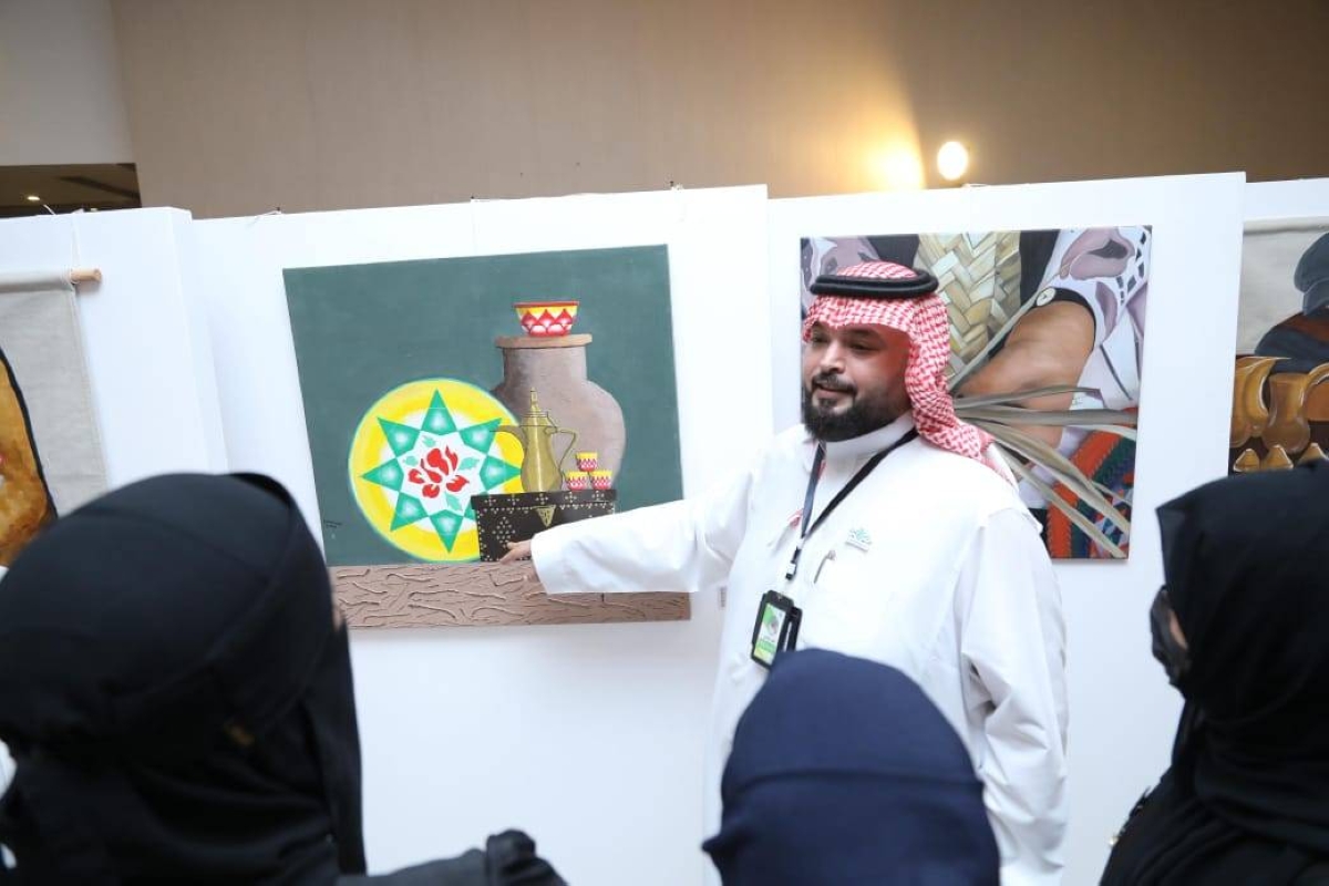 The exhibition was held in honor of Dr. Huda bint Abdullah Hawsawi, head of the Department of Visual Arts at the College of Designs and Arts at Umm Al-Qura University, and was attended by university professors, artists, and media representatives, in addition to a delegation from the Heritage Authority in Mecca, with the total attendance exceeding 300 people.