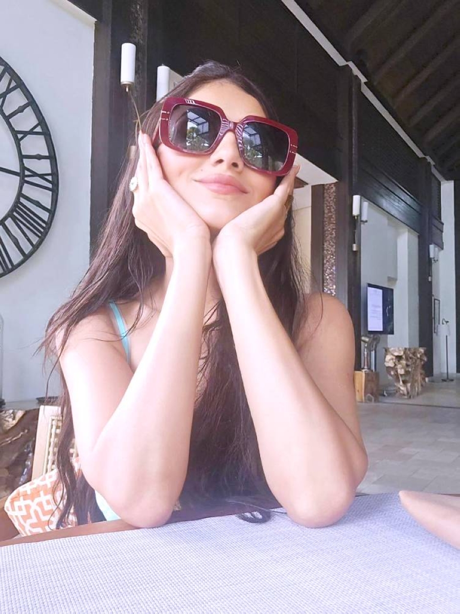 مي عمر خلال إجازتها نشرت صورتها عبر فيسبوك.