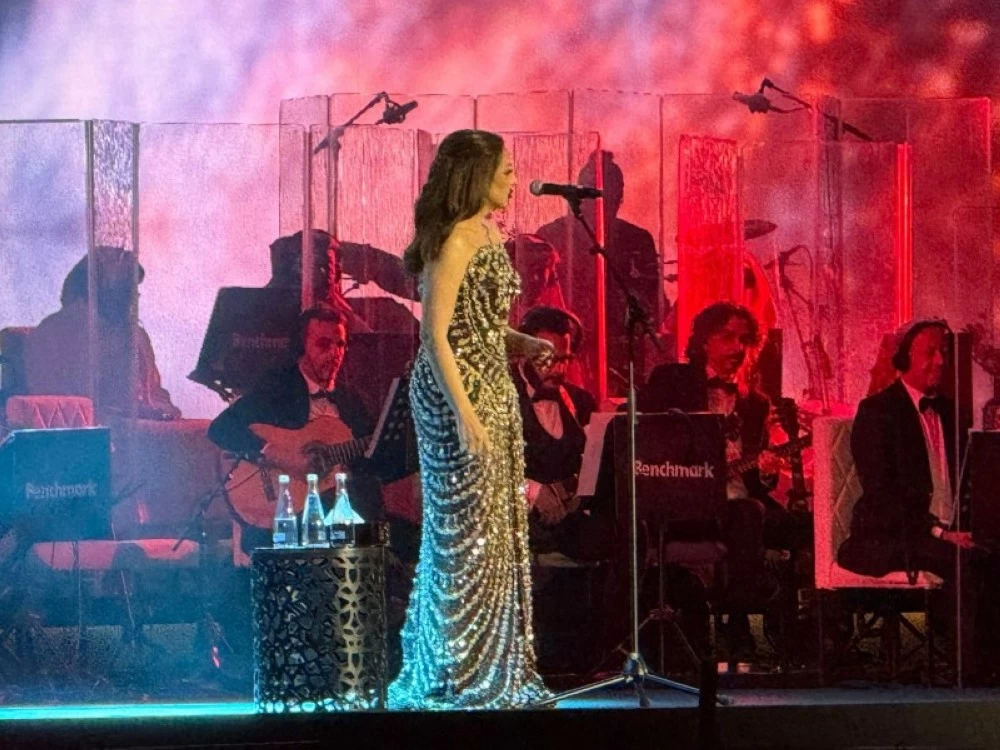 The artist Angham revived a musical night as part of the Riyadh Season events, opening the concert with her famous song "Omri Ma'ak" amidst great audience interaction. During the evening, she presented a selection of her most prominent works that ranged from classical to emotional and modern styles, including "Hala Khasa Jidan," "Ala Fikra," "Khalik Ma'ah," and "Alf Asef," in a soirée that extended past midnight.