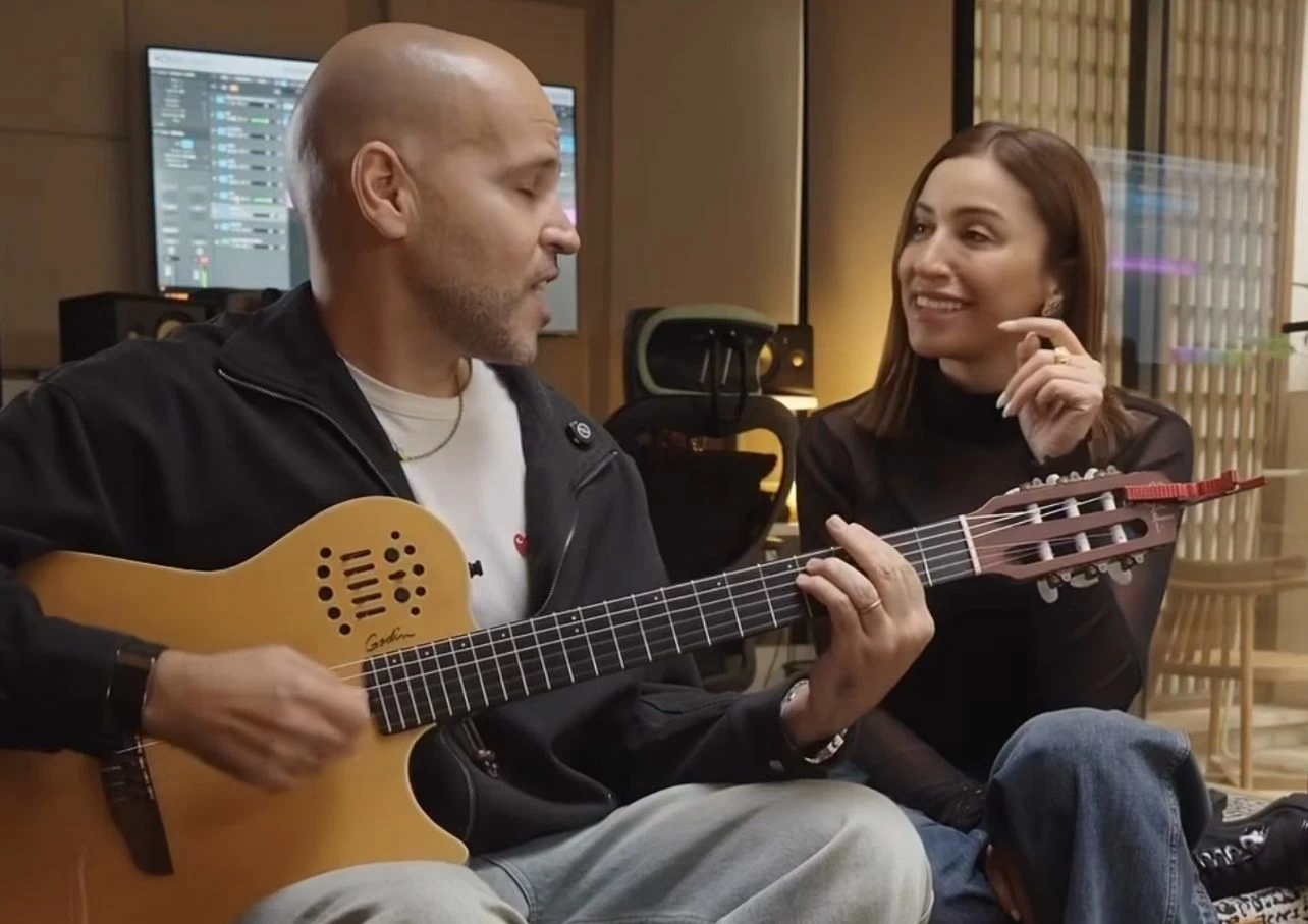 Abu appeared in a video clip he posted on the "Instagram" platform, playing the guitar and performing part of the song, while Dina El Sherbiny joined him in singing in a simple and spontaneous atmosphere, which caught the audience's attention and sparked wide interaction.