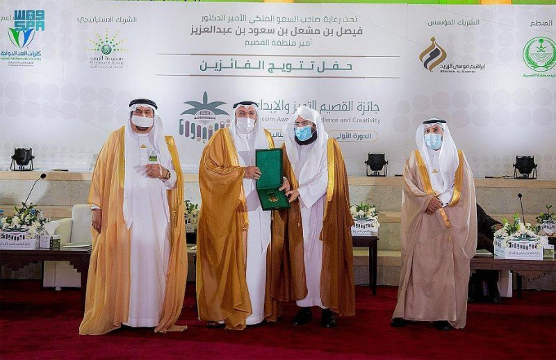 وفي نهاية الحفل كرّم أمير القصيم 13 فائزا بجائزة القصيم للتميز والإبداع في دورتيها الأولى والثانية وجاءت نتائجها: