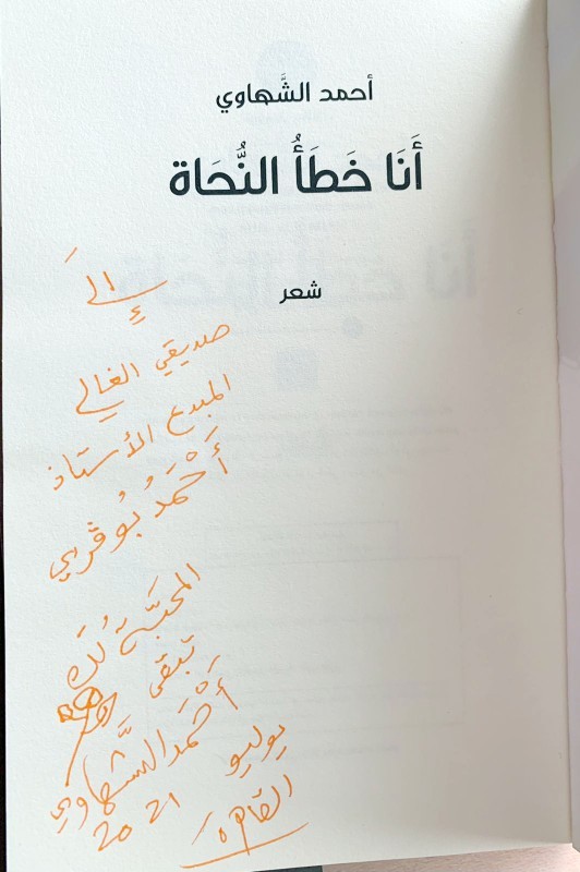 (أحمد.. ما نقوله الآن واقفين.. نرجو أن يبقى مستمراً كالنصل في الأفق..)، وأكد أنه ما زال يذكر الإهداء ويعتز به.