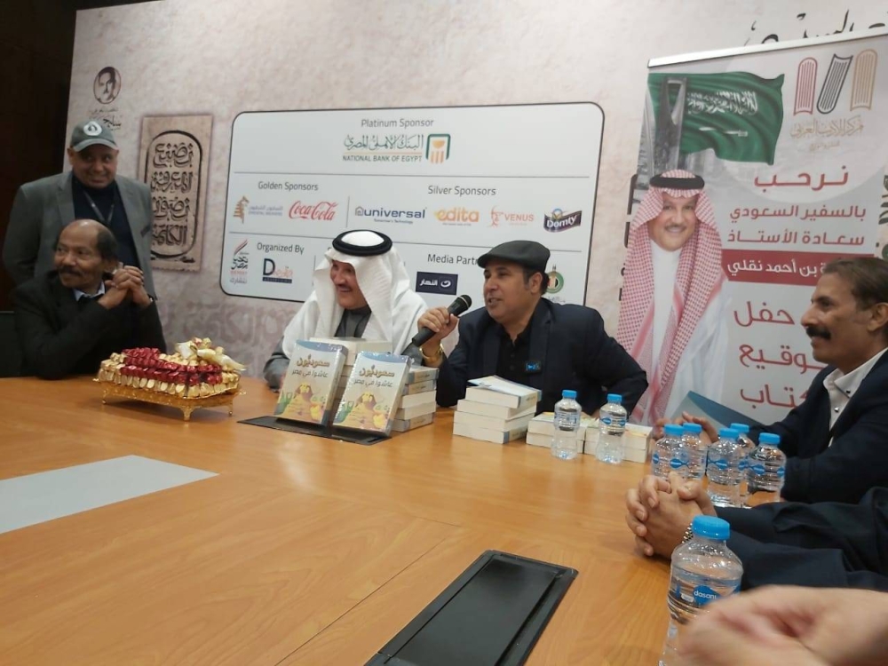 احتفى الكاتب السعودي الدكتور أحمد العرفج بتدشين الطبعة الأولى من كتابه «سعوديون عاشوا في مصر» الصادر عن مكتب الأدب العربي للنشر والتوزيع، وذلك ضمن فعاليات معرض القاهرة الدولي للكتاب 2024، أمس (السبت)، بحضور سفير خادم الحرمين الشريفين لدى القاهرة السفير أسامة أحمد نقلي، الذي امتدح الكتاب وأثنى على الكاتب الذي جال في أروقة تاريخ المنطقة العربية واستطاع إبراز الجانب الإنساني للعلاقات السعودية المصرية وتجسيده في رموز وشخصيات سكنت مصر، وسكنتها مصر، في شريحة زمنية امتدت لقرن من الزمان، وذلك بحضور عدد كبير من المثقفين والأدباء والإعلاميين السعوديين والمصريين، ومنهم الروائي عبده خال.