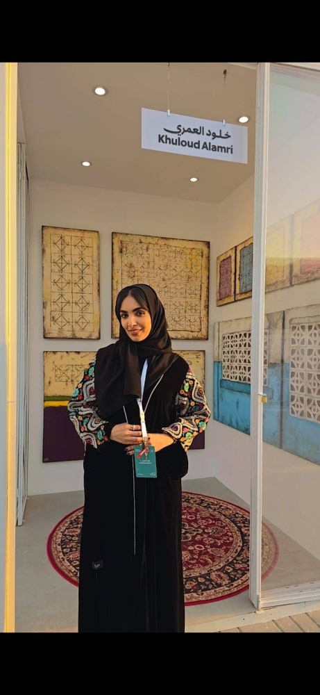 Khulood Al-Omari is a visual artist from Jeddah, holding a Bachelor's degree in Management and Economics from King Abdulaziz University and a diploma in Graphic Design. She has participated in art exhibitions in Jeddah, Khobar, and Riyadh, and has numerous collections, awards, and honors. She is considered one of the Saudi female artists who carry an authentic heritage thought that draws beauty from the environment, whether it is the southern environment or the old neighborhoods of Jeddah to which she belongs.