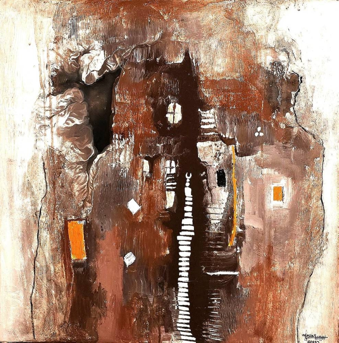 Al-Alawi's works varied between calligraphy, abstraction, and popular symbols, evoking ancient architecture and elements of daily life, but in a contemporary formulation that gave the painting a dialogical dimension pulsating with spirit. The artist did not merely summon memory; he reproduced it in a formative language that illuminates the past and raises questions about the present, transforming the painting into an open text that each visitor reads in their own way.